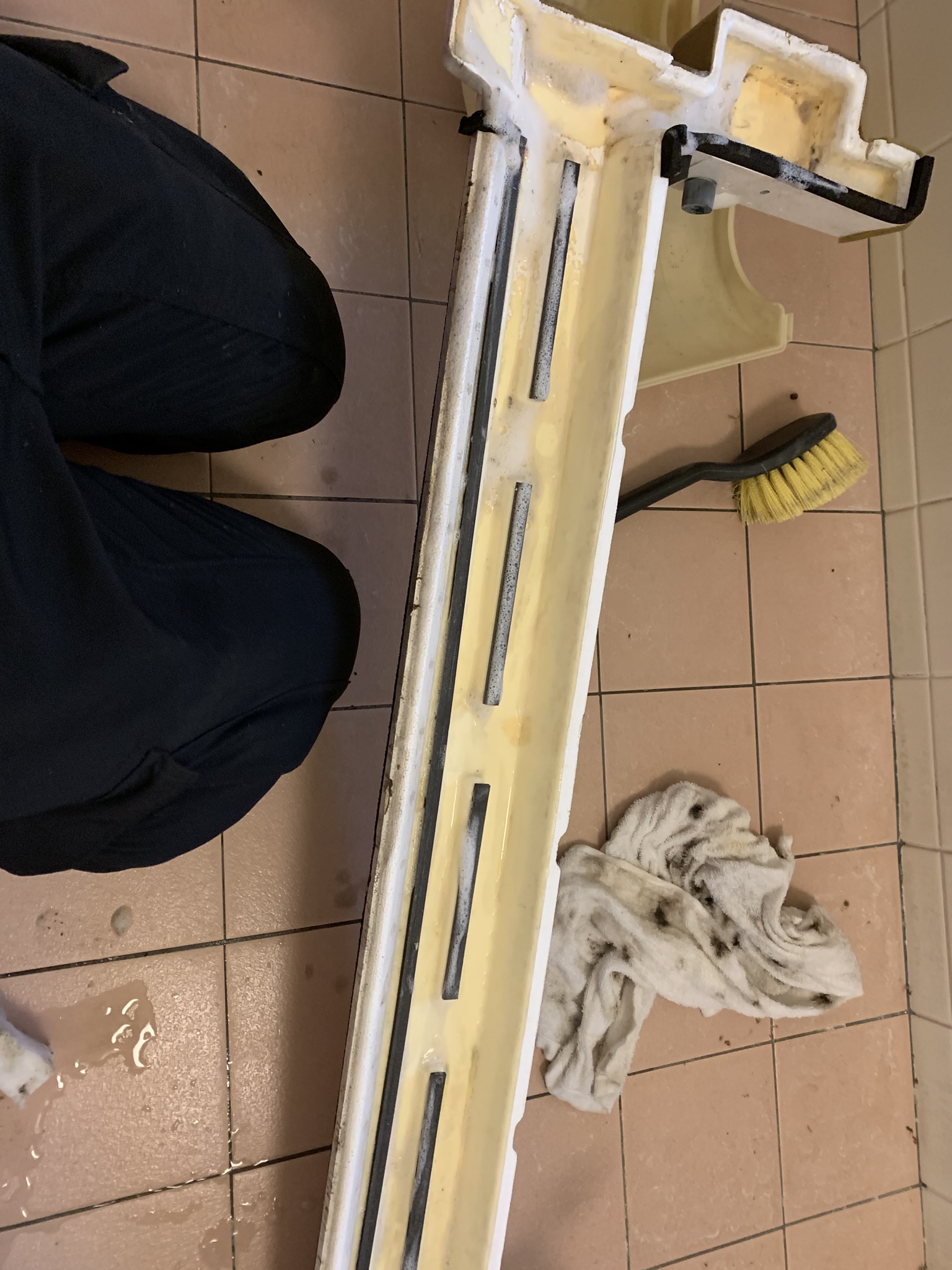 相変わらずエアコンクリーニングのご注文が多くて毎日雨の中バイクで飛び回っております。今回の作業は天井に埋め込まれたエアコンの清掃でした。天井に埋め込まれたエアコンは見た目はほとんど一緒でも中の構造や分解の仕方がそれぞれ違っていたりします。今回のエアコンですが、まず表面のカバーを外します(これはどのタイプのエアコンでも一緒ですね)。それからフィルターを外し電気の線を必要に応じて外しファンを外します。このファンが重くて外すのに苦労します。次にドレンパンというエアコンの結露した水を貯めるためのパーツを外します。この中には当然水が残っていることが多いので傾けて水をこぼさないように外します。見てみるとドレンパンの内部はカビですごいことになっています。ここまできたらあとは外すものはないのでエアコン本体と周りに養生をして洗う箇所に洗剤をかけます。次に外したパーツを一つ一つ洗います。パーツの洗浄が終わったらいよいよ本体の熱交換器を高圧洗浄機で洗い拭けるところを拭いて洗浄完了です。