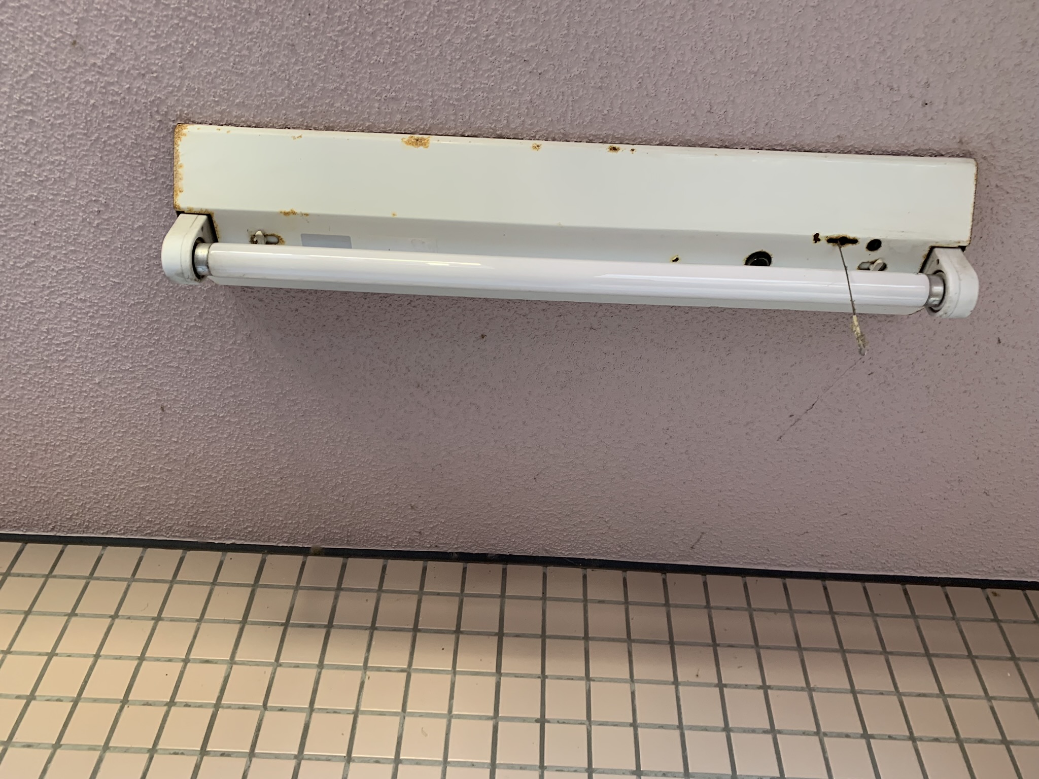 もうそろそろ8月も終わりです。5月くらいからほぼ連日エアコンのクリーニングをしてきましたがこの頃はエアコンのお掃除の比率はやや低くなり浴室やキッチンのいわゆる水回りの清掃の案件が増えてきました。当店は主に個人のお客様がメインでマンションや戸建て住宅の清掃をすることが多いのですが、たまにアパートや賃貸マンションを所有されている大家さんから居住者のかたが退去した後の空室清掃や定期的な共用部分(外廊下や階段など)の清掃のご相談をいただくこともあります。このような場合、オーナーさん自ら空室清掃されていて体力的にきついとかなかなか時間が取れないとかやってもきれいに汚れが落ちないとか所有している管理物件が自宅から遠くて往復するにも時間がかかり過ぎるといった理由が多いです。共用部の清掃をご依頼になるのはどこに頼めば良いかわからなかったとか管理会社にお願いしているけどあまり丁寧に作業をしてくれないといった事情が多いようです。もちろんこのような空室清掃や共用部の日常清掃も喜んでお引き受けいたします。写真はわかりにくいと思いますが賃貸マンションの外階段の蛍光灯の清掃前と清掃後です。