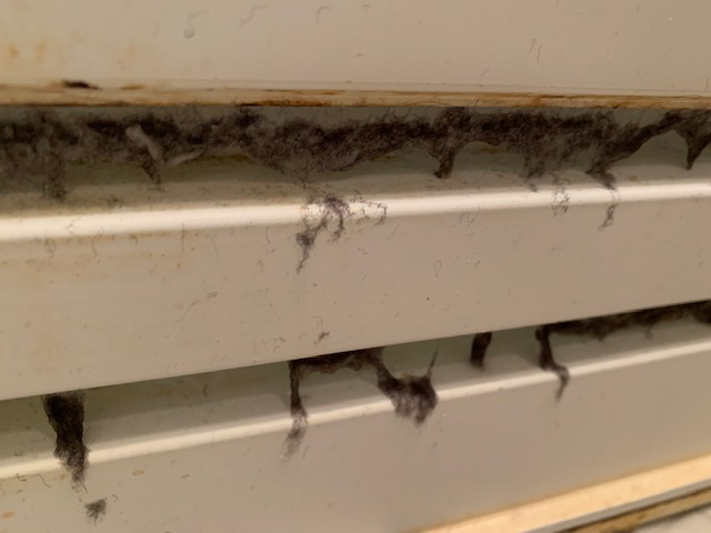 掃除の仕方ですが、水垢を溶かすためにまず酸性洗剤をかけます。その後シャワーの水をかけながら細いヘラで埃の塊を書き出します。これをドアの表側と内側双方からやります。びっくりするくらい埃が出てきます。これでもかというくらい非コリが詰まっています。最後は通気口の上から下から覗き込んで埃が残っていないことを確認します。