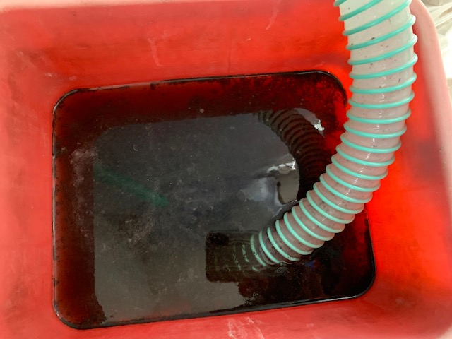 右の画像は作業終了後のエアコンから出た汚れを含んだ水です。黒いのはカビの色です。