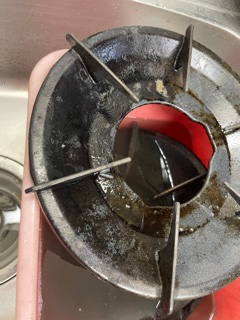 お客様が特に気にされていたのは五徳にこびりついたガンコなコゲと油。