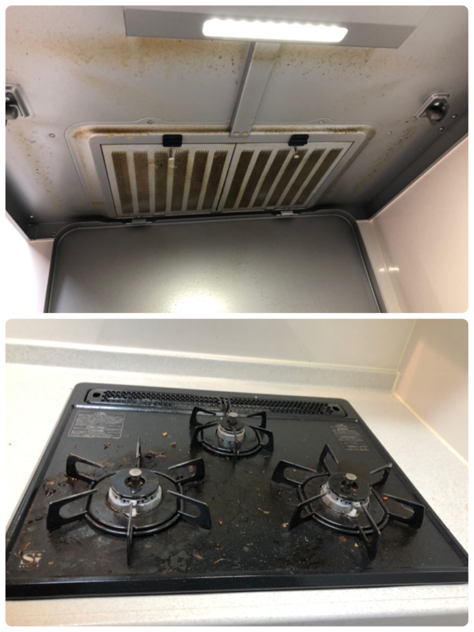 レンジフードは油汚れがついているものの固まってはいないので