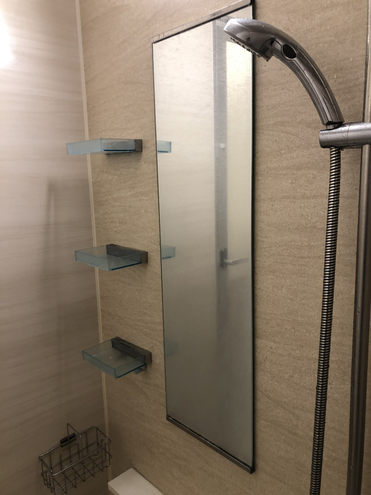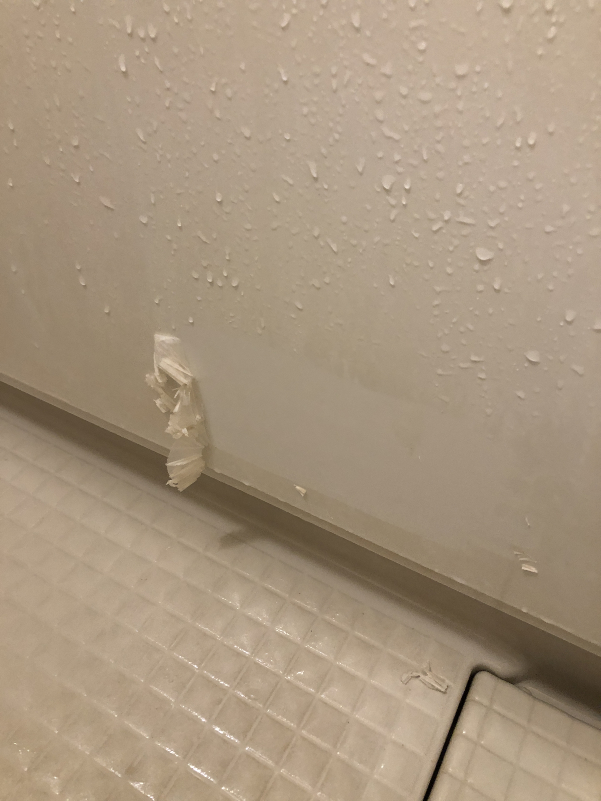 今日のお風呂場は石鹸カスがあちらこちらへ。