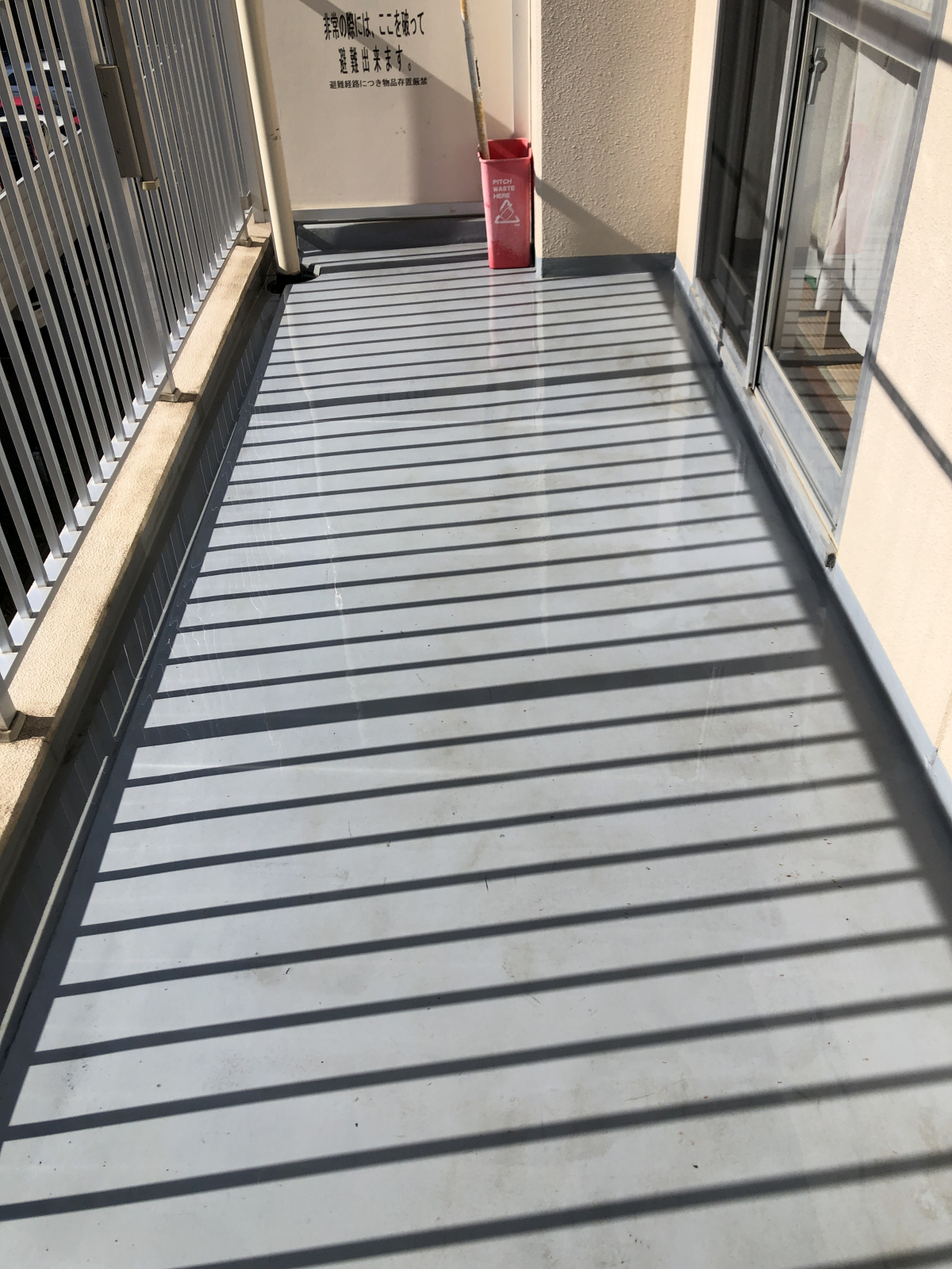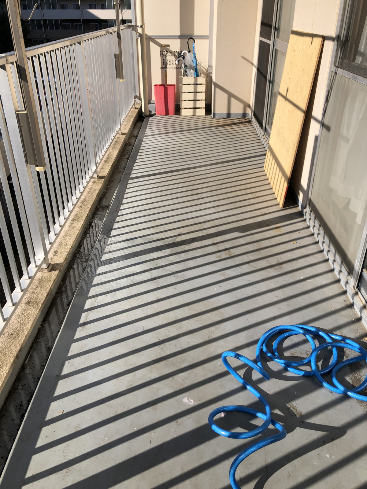 今日のベランダは高圧洗浄では相性が悪い床材でしたので、ホースを使い