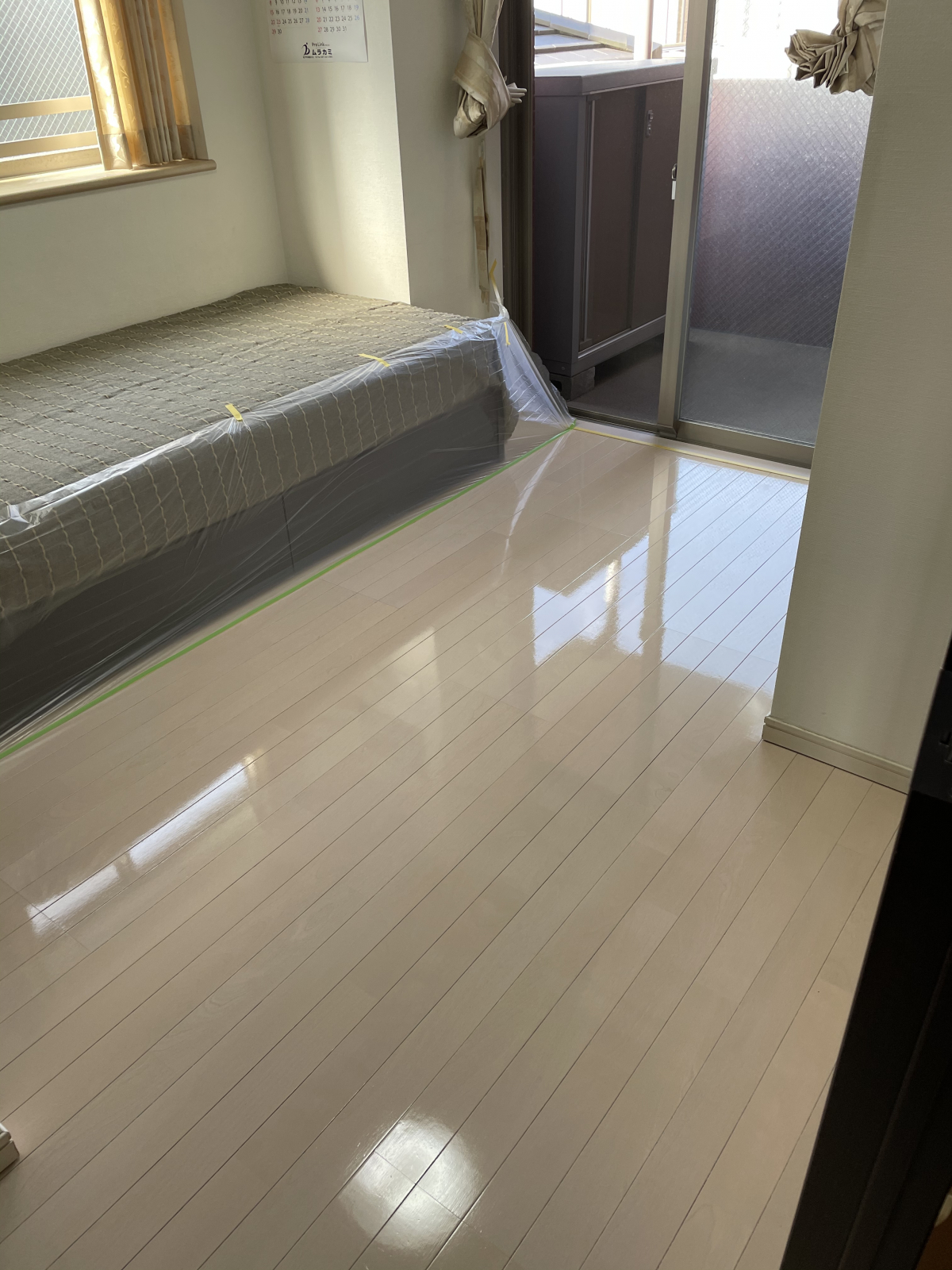 約5時間床を擦り続け、ワックスを塗った床がこちら!!