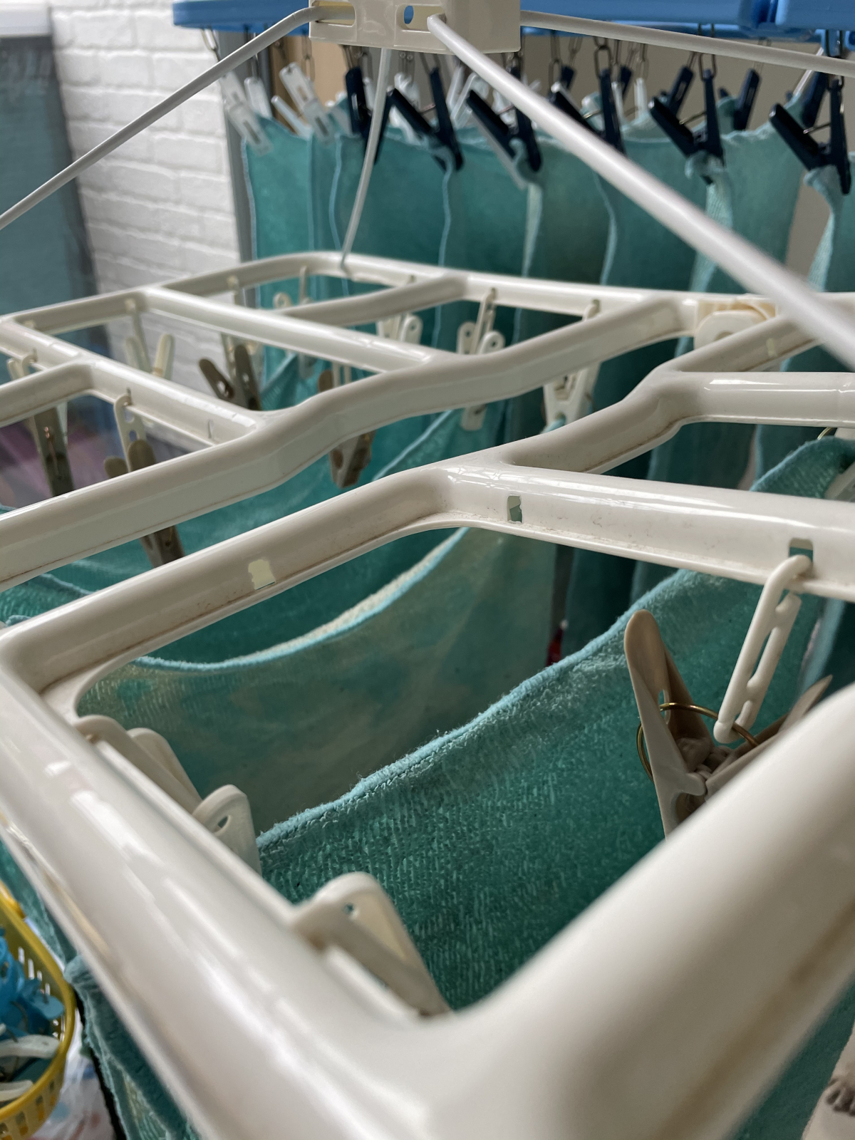 いつもならキャッチハンガー1つで足りるものの、今日は2つ使いパンパンです!