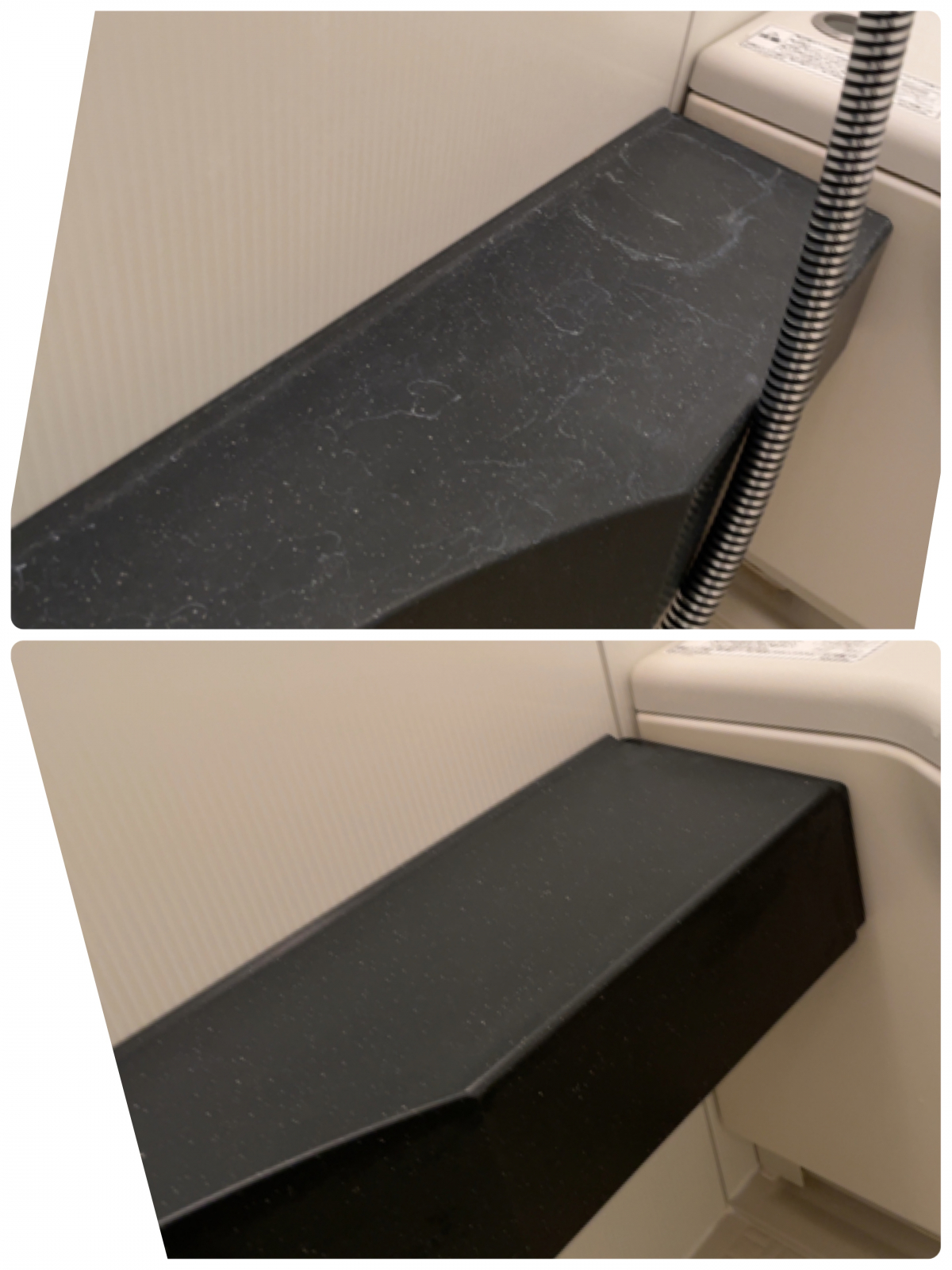 黒い台ですが、乾くと出てくる白い水垢!