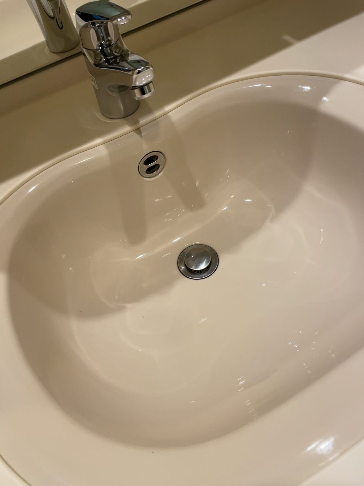 今回の洗面所は陶器だったため、硬度のあるパットと、研磨剤で磨き上げ、こんなにツルピカに!