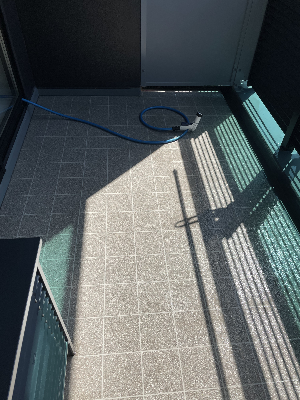 砂埃で黒ずんでいたベランダも新居並みにピカピカに!