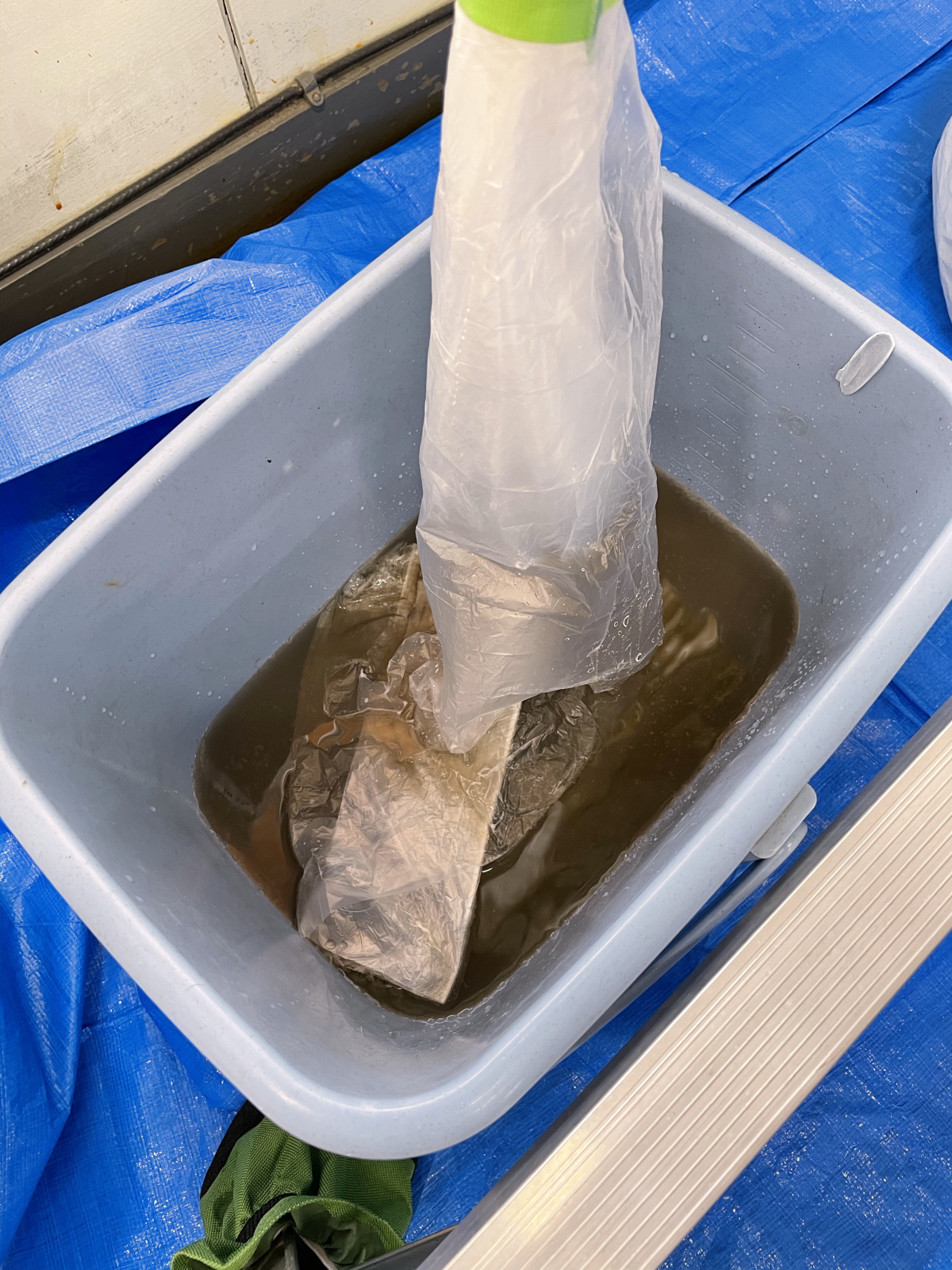 初日は5台お掃除しましたが、全てのエアコンからカビや埃の汚水がバッチリ!