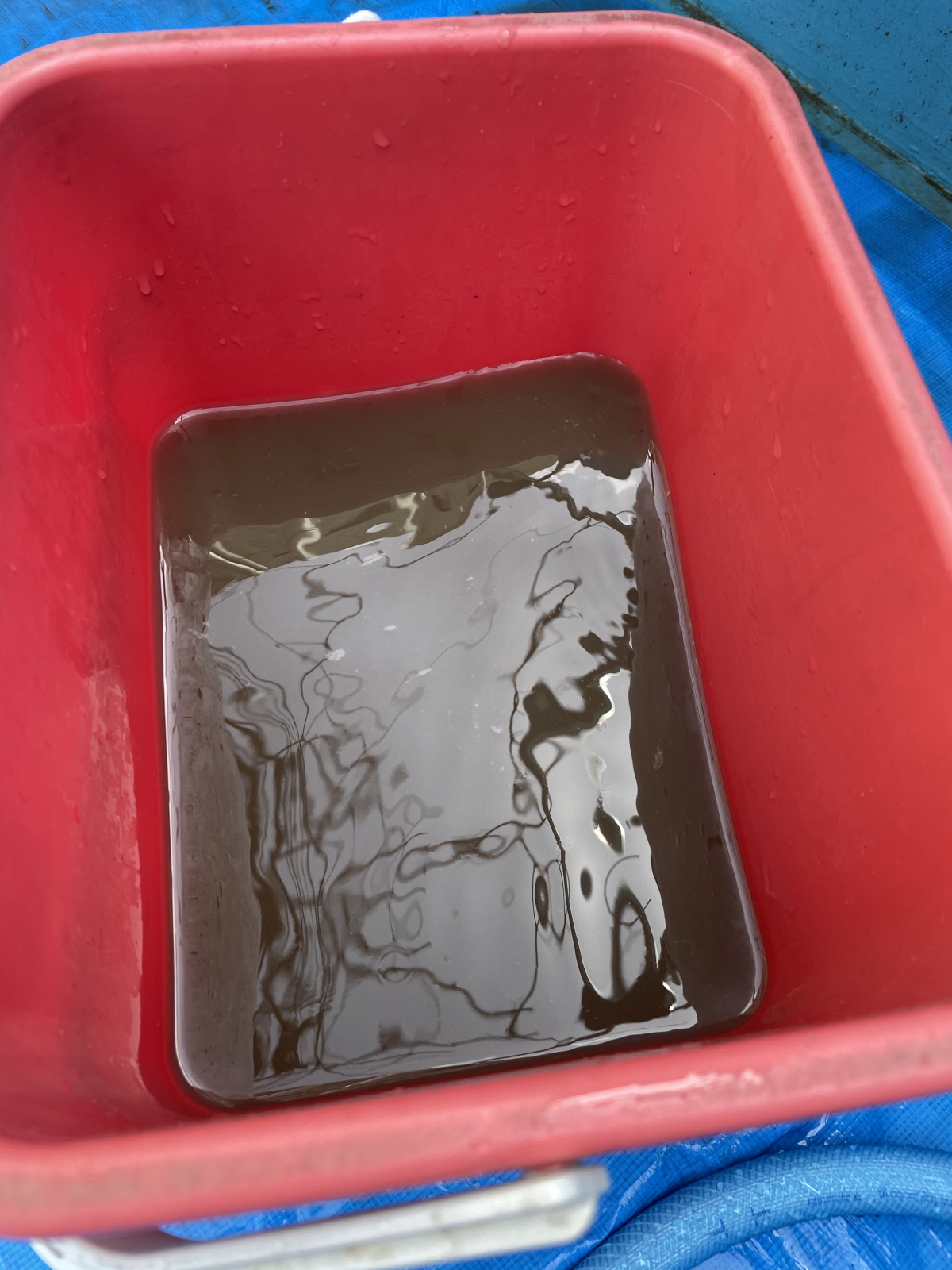 幼稚園のエアコンは埃でかなり汚れている状態で、汚水はカビというより、砂埃汚れで黒ではなく茶色でした。