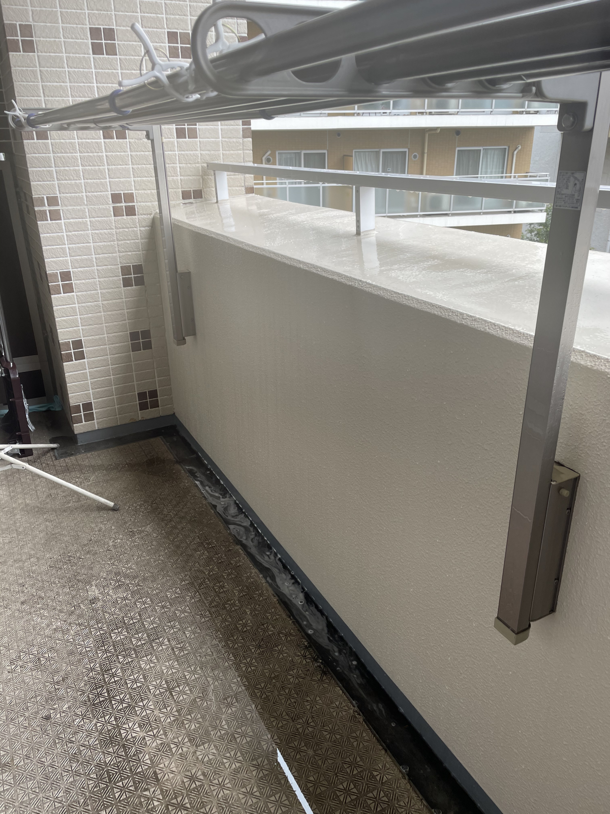 今回のベランダは、白壁に雨垂れが多く垂れシミになってしまってました。