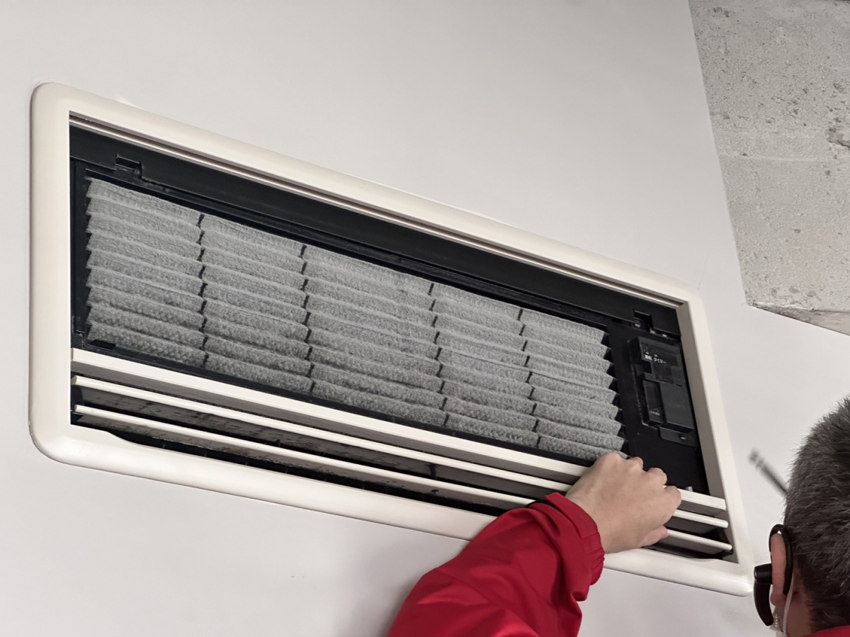 天井の高い家の壁に埋めてあるエアコンの清掃は、なかなかできません。