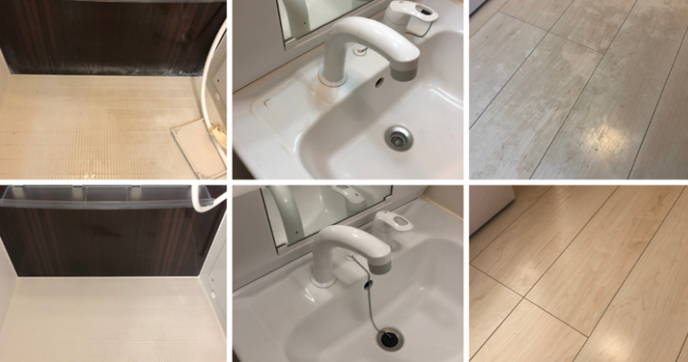 窓ガラスのシール跡と床の汚れが酷く、作業に時間が掛かりましたが、汚れに合った道具や薬剤を使用することで綺麗にすることが出来ました。