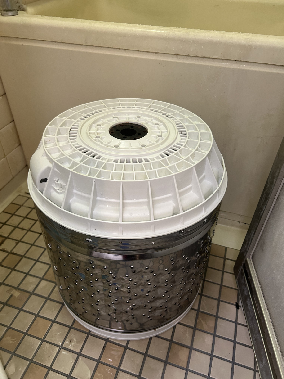 「ドラム式洗濯機の裏側、見たことありますか?プロの分解洗浄でここまでピカピカに!(^_^)」