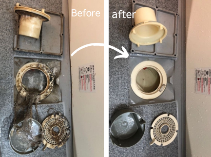 固まった汚れやヌメリもスッキリ除去して、ピカピカの状態に戻りました(^_^)
