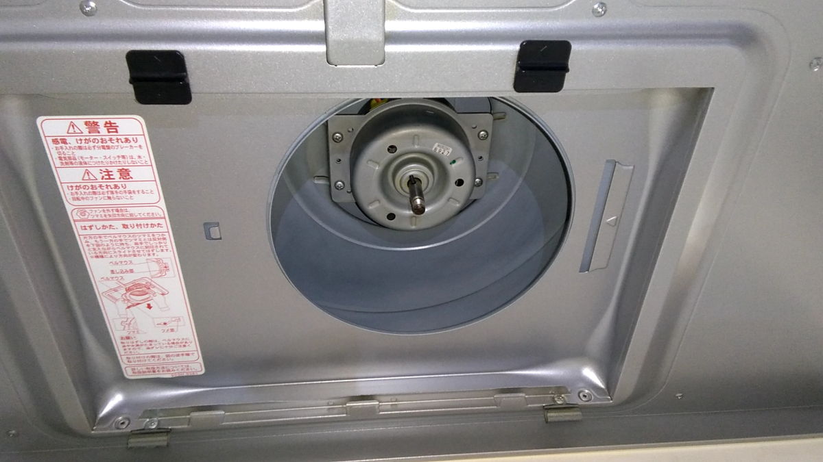 レンジフードはファンを外して羽を1枚づつ洗い落とす、レンジフード内部、フィルター、表面、上部など