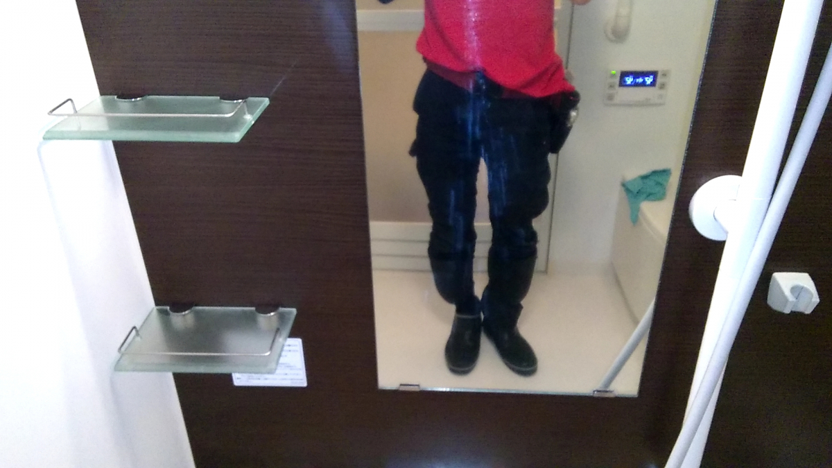 黒系の壁だと石鹸カスや水垢が浮いてきてなかなか苦労します。