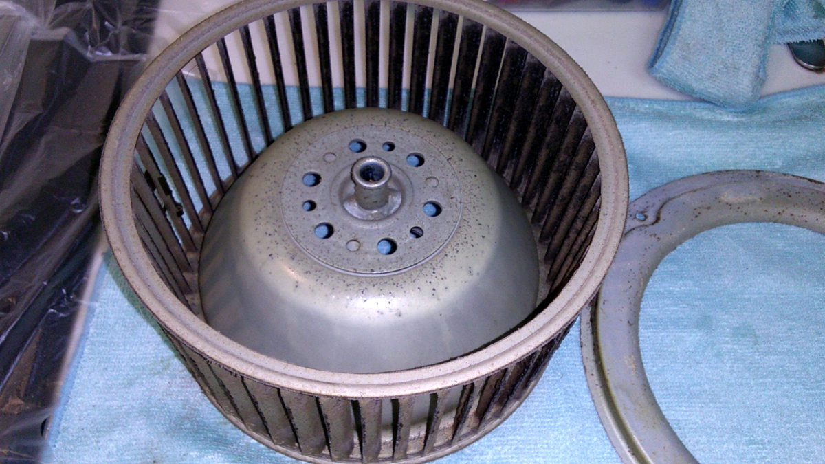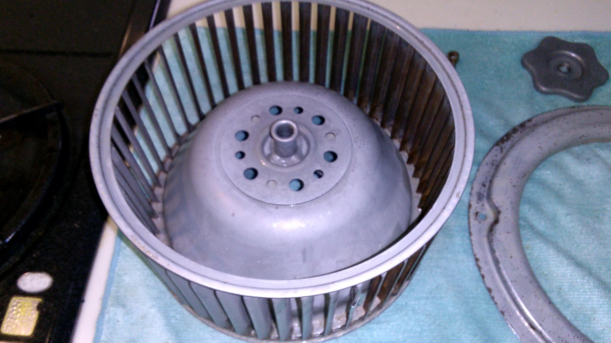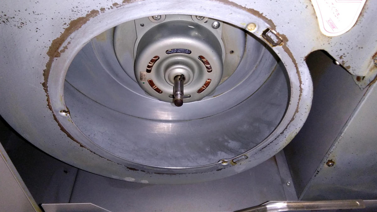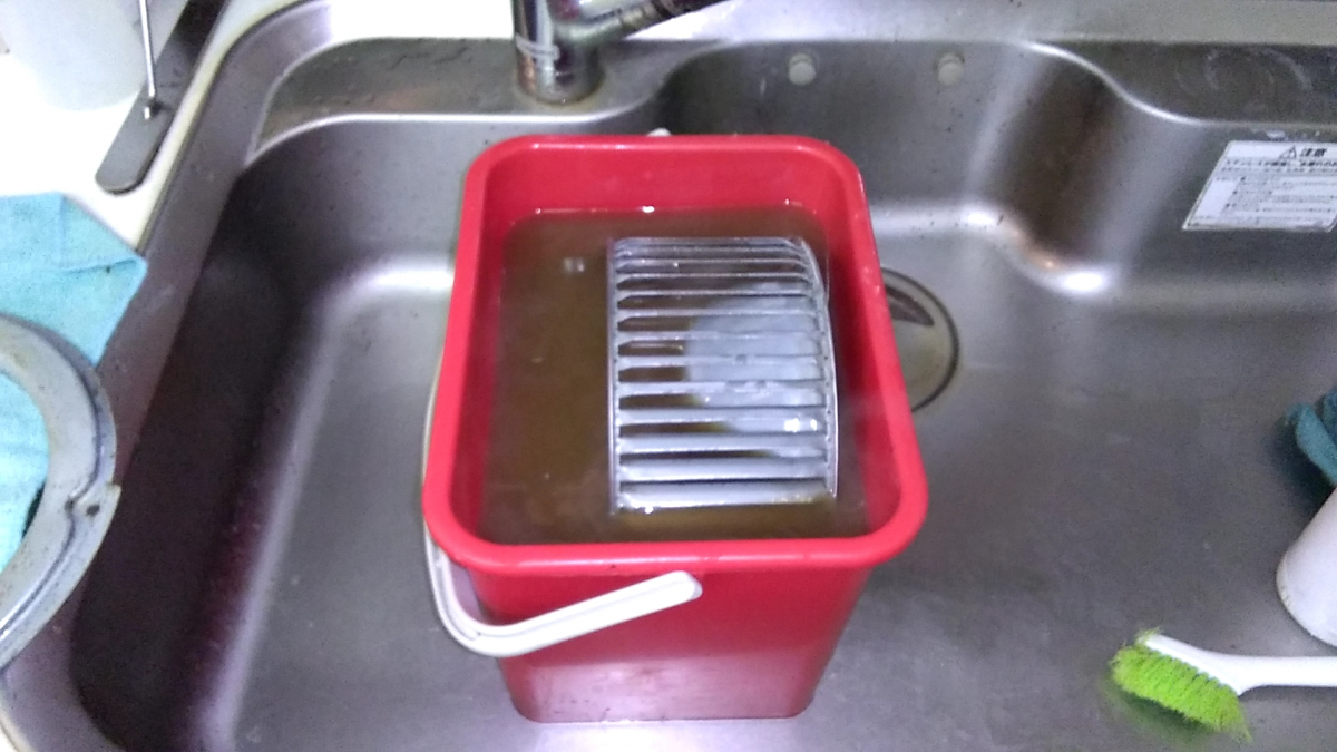 シロッコファンを取り外してつけ置き洗剤の入ったバケツで汚れを落ちやすくします。