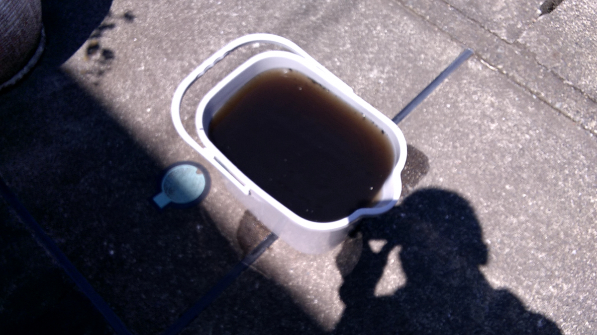 油を含んでいるのでこれだけ水を使っても汚水の色は真っ黒!