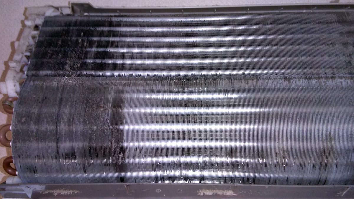 リビングのおそうじ機能付きはホコリ、カビ、油など汚れが付着してました