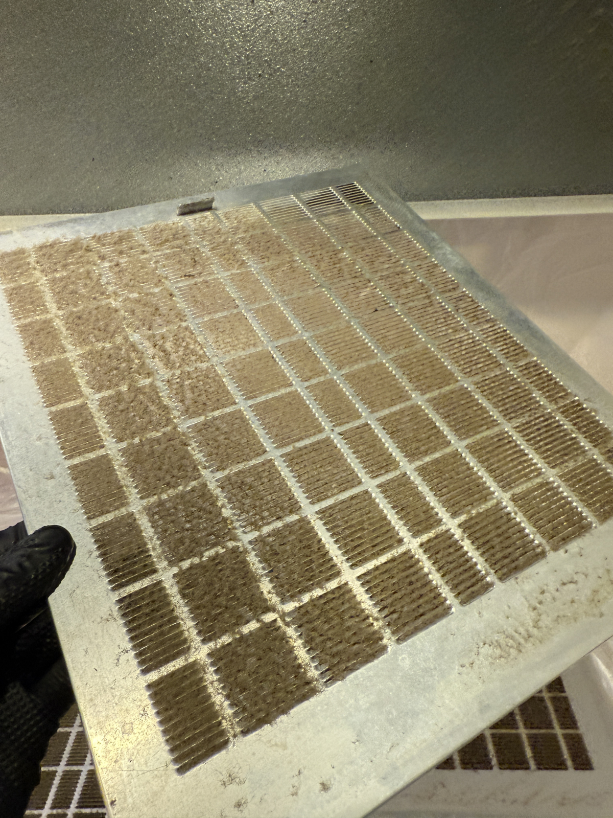 不織布のフィルターを使用していなかったのもあり、油と埃がビッシリ!