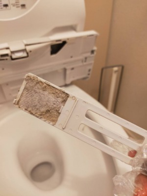 尿石の溜まりやすい場所は便器の縁の裏側になるので普段は見えないとことに溜まっていくのです。