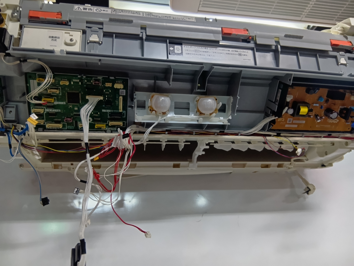 当然お掃除機能を動かすための機械部分が必要になりますので、基盤やコネクタがこれだけ追加されます。なので分解の難しさや繊細さに加えて洗浄する際に一般型に輪をかけて神経を使って作業をします。