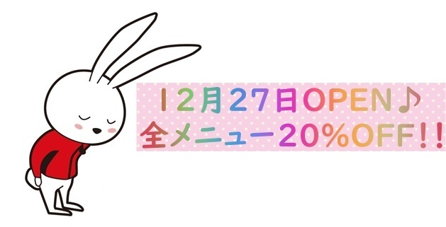 2024年12月27日OPEN!! 開業キャンペーン、全メニュー20%OFFとなります♪