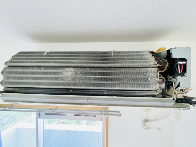 これはクリーニングを数年以上実施していないエアコンは高確率で当てはまります。フィルターを定期的に掃除していても内部の熱交換器や送風ファン等にはカビがはえますし、ほこりやハウスダストも溜まっていきます。暖房から冷房へ切り替えると、内部の温度変化により臭いを発生させることがあるため嫌な臭いがしてきます。