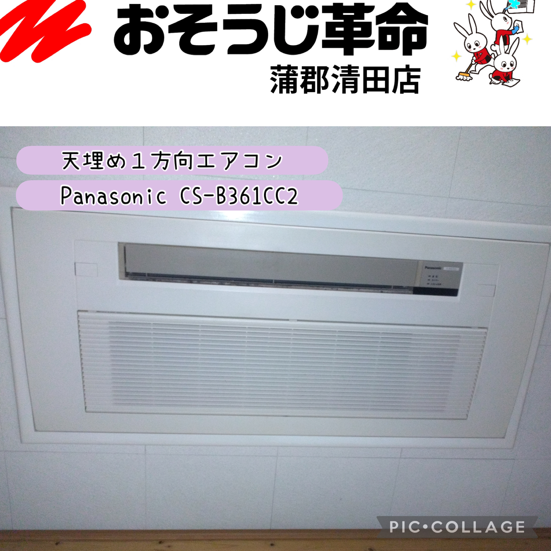 天井埋込エアコン(Panasonic CS-B36CC2)を分解清掃しました