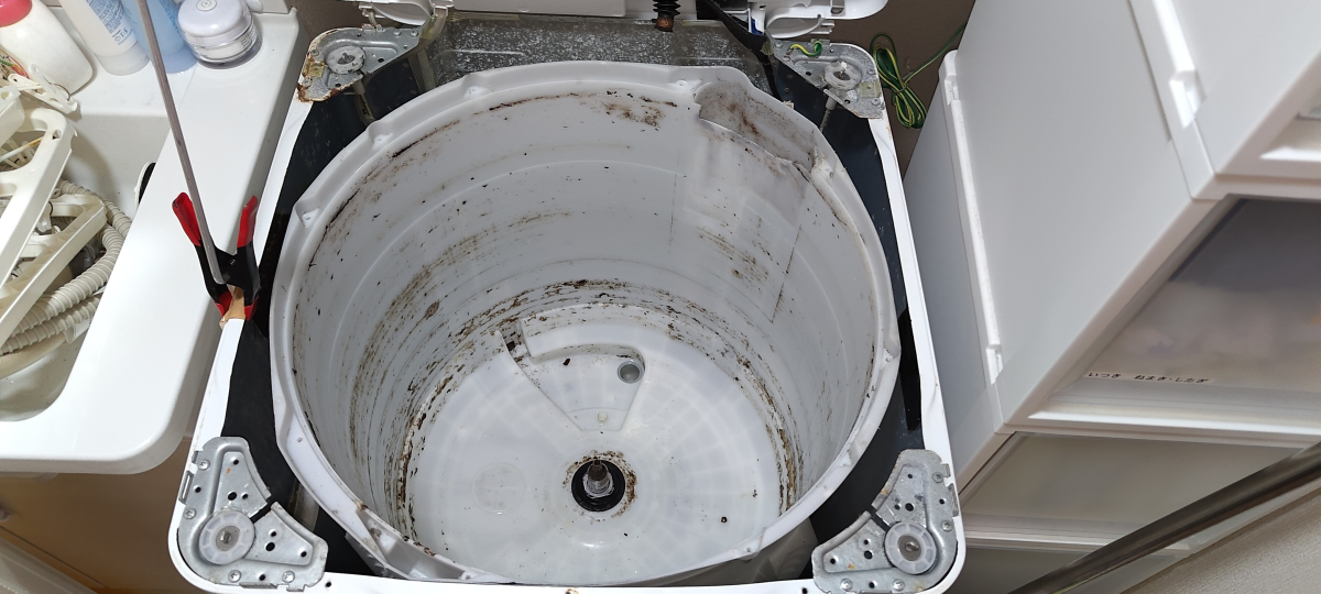 画像は洗濯槽&脱水槽です。洗剤や柔軟剤や皮脂汚れにカビが繁殖しています( ;∀;)