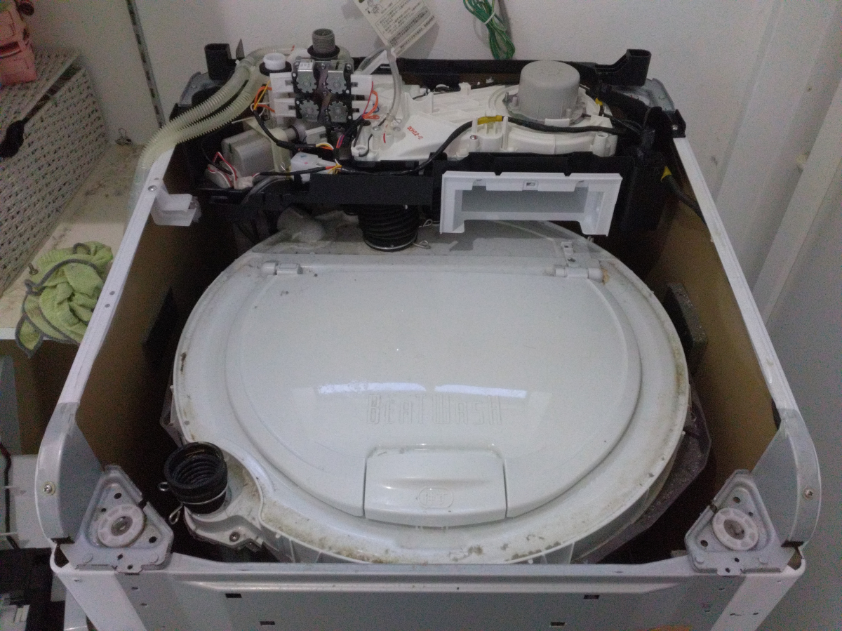 上蓋&前面板&洗剤投入口などを分解。通常洗濯機に比べて大変です。