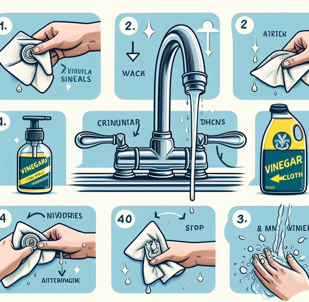 酢は水垢の主成分であるカルシウムを分解する働きがあるので、力を入れなくても汚れが落ちやすくなります。仕上げに乾いた布で拭き取るとピカピカになりますよ!