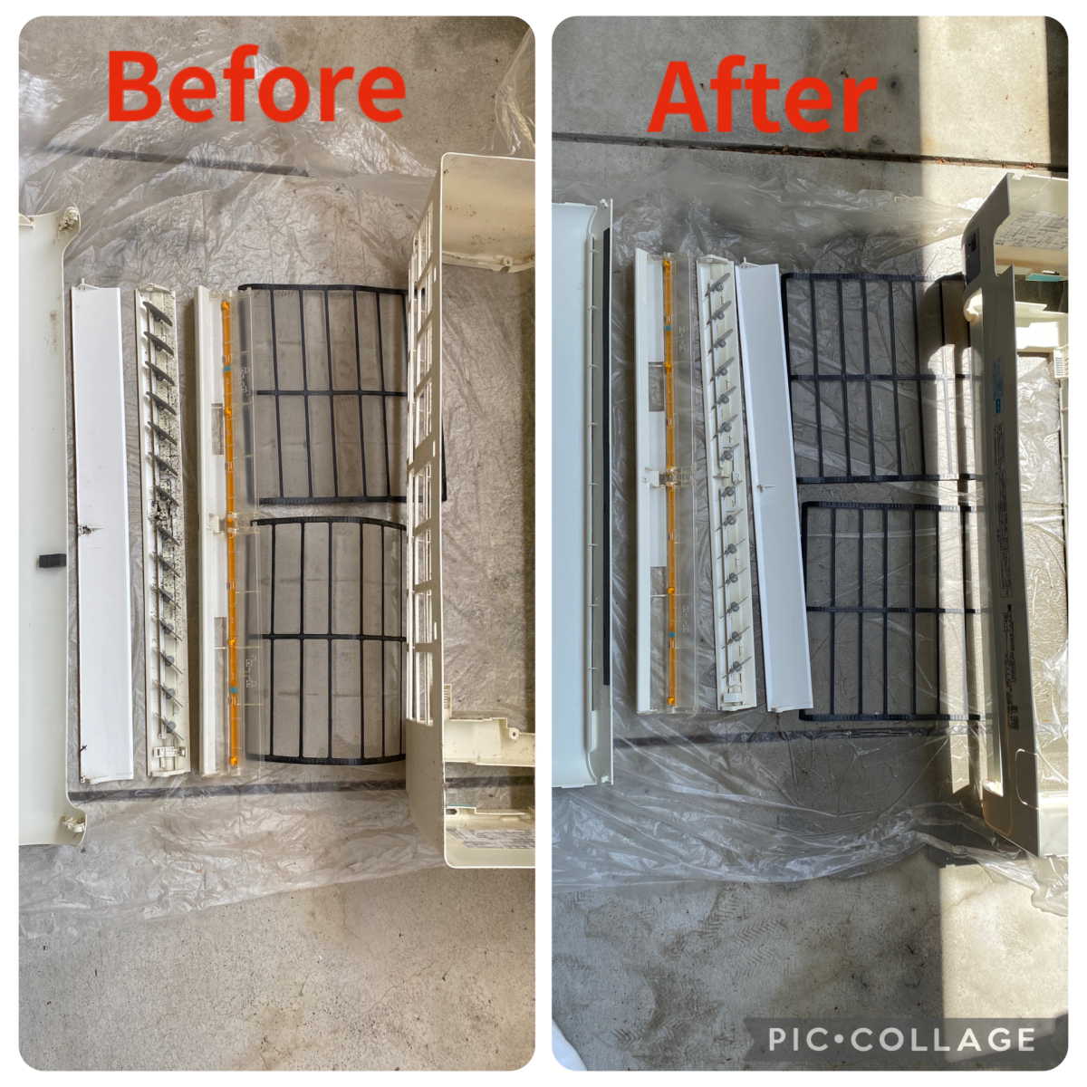 しっかり分解し、高圧洗浄で内部の汚れを徹底的に除去。仕上がりを見たお客様には、「これで安心して使えます。空気が気持ちいい!」と大変喜んでいただけました。