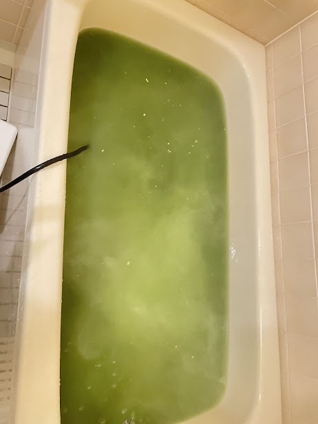 追い炊き配管洗浄後の浴槽の中は菌や汚れがどんどん浮き出てくるのでビフォーアフターが明確にわかります!