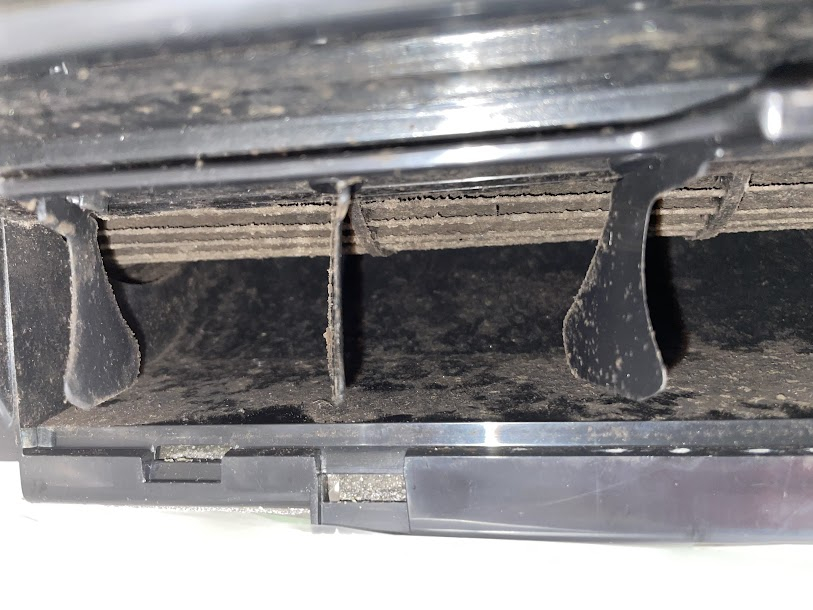 下の写真を見てもわかると思いますがカビ、ホコリがみっちり詰まっていました…