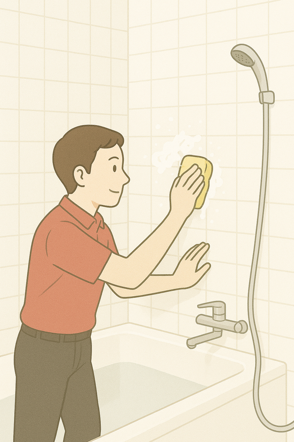 清掃の方法としては、まず中性洗剤を窓全体に吹きかけます。