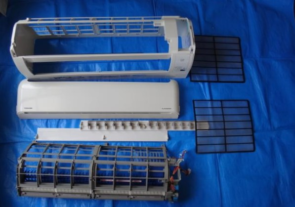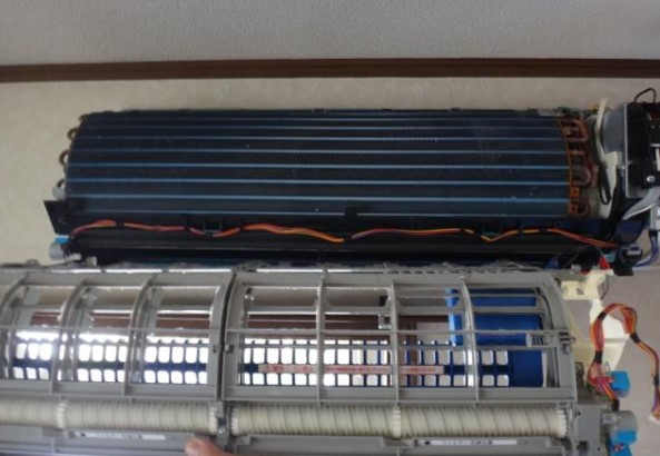 カビでいっぱいだった左右の風向ルーバーもキレイになりました。すべてをキレイにしましたら、あとは元に組戻します。