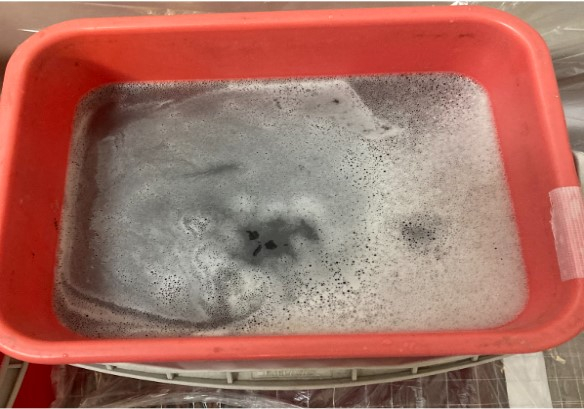 エアコン洗浄後に出て来た汚水になります。真っ黒です。
