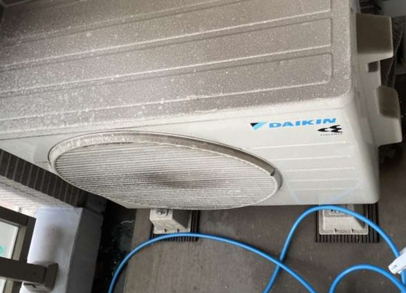 フィンやファン部分に付着したホコリ・砂・汚れを丁寧に除去し、冷暖房の効率を改善しました。