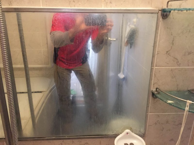 おそうじ革命の空き部屋クリーニングでは、この浴室鏡のウロコ汚れも料金に含まれております!