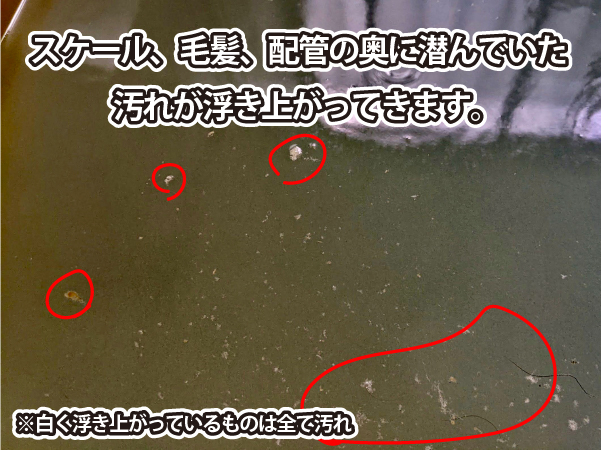 お湯を吸い込む際に、湯船の垢や汚れもお湯と一緒に配管内へ吸い込んでいるため、配管の中は少しずつ汚れが付着していきます。