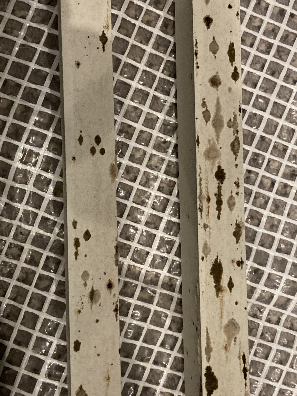 寝室のエアコンを分解してみると木枠の内側にはカビが繁殖していまいた。