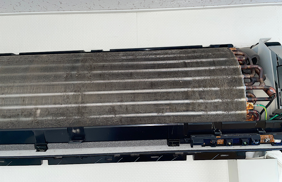 エアコンを下から覗くとカビやホコリで吹き出し口が黒くなっていませんか??