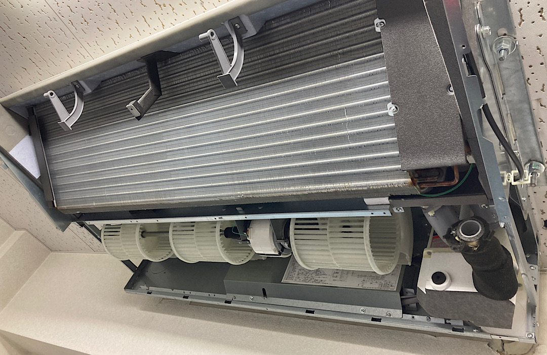 また、ご家庭のエアコンと違って、大型機が多くてフィルター掃除も大変です(๑•ૅㅁ•๑)