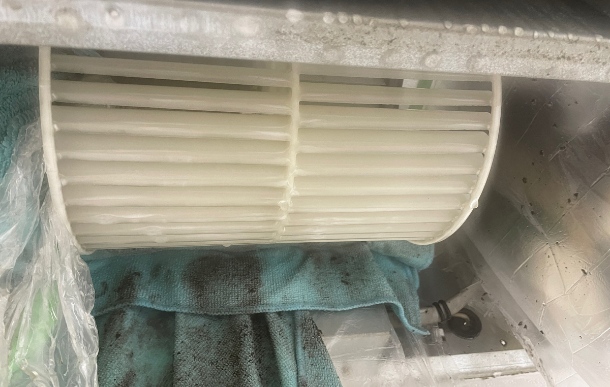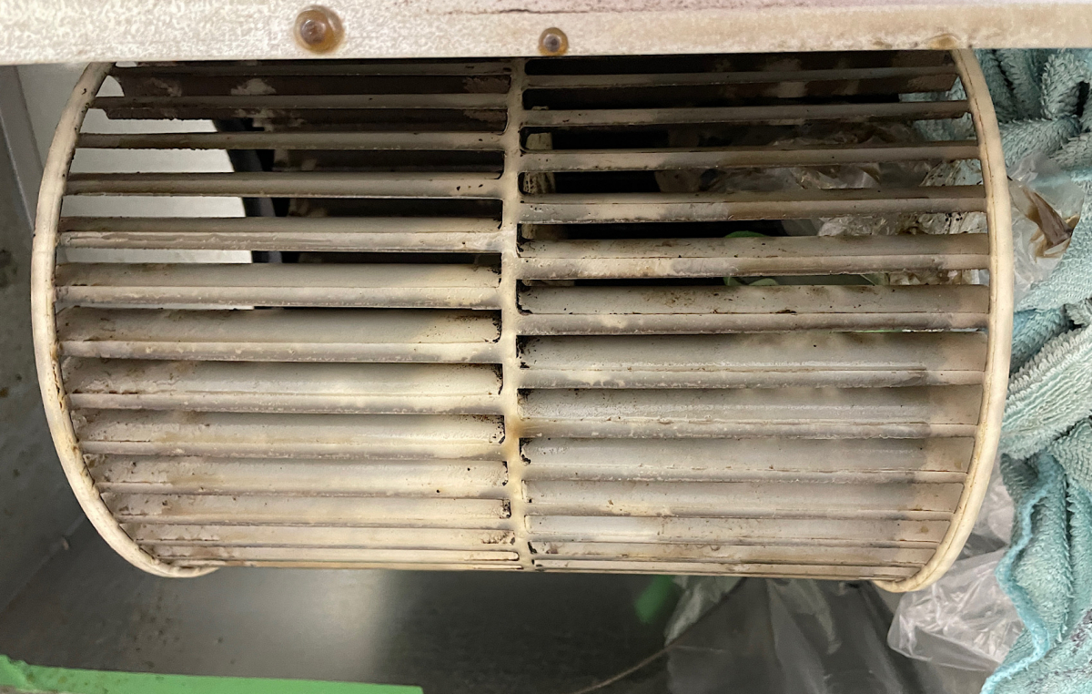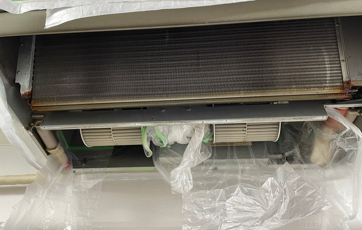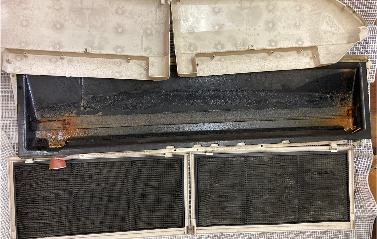 やっぱり、オフィスのエアコンは、すごく汚れていました。(_ _|||)