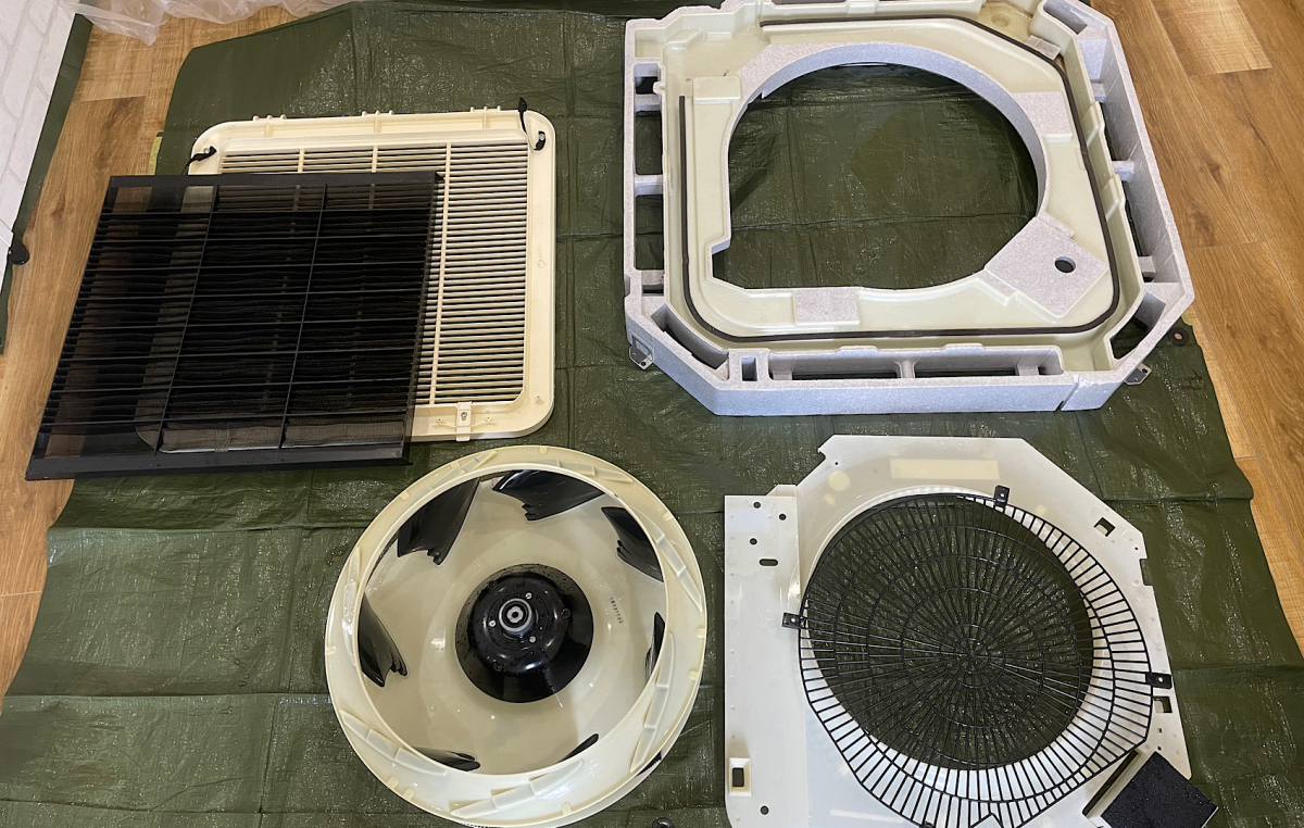 天井埋込のエアコンをバラバラに分解している・・・☝