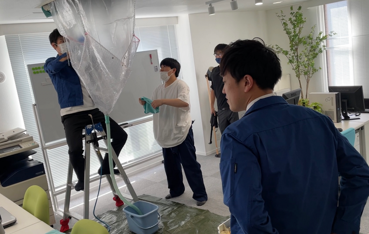 エアコンクリーニングの映像撮影ということで、天井埋込4方向エアコンを分解しての撮影協力のご依頼です。