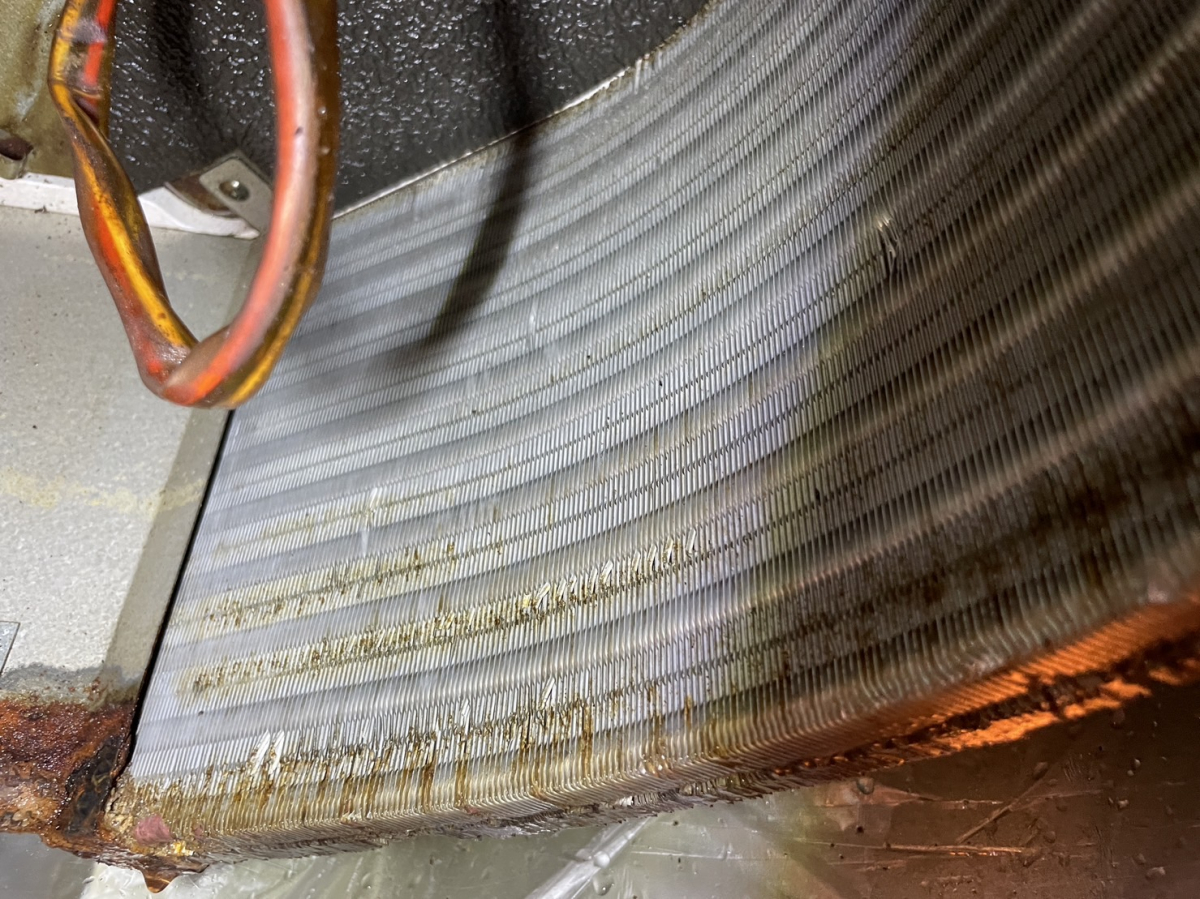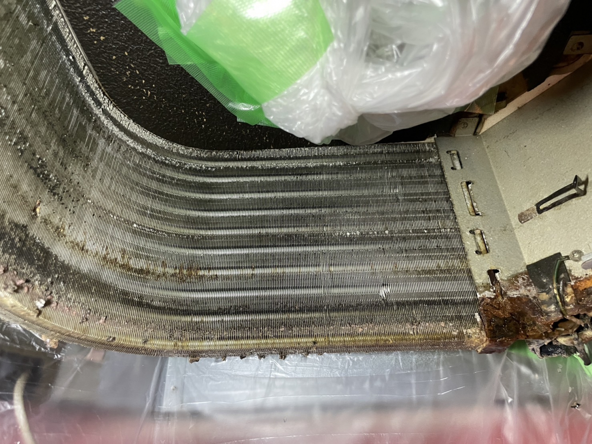 熱交フィンは、汚れで目詰まりしている状況・・・。Σ(oдΟ;)